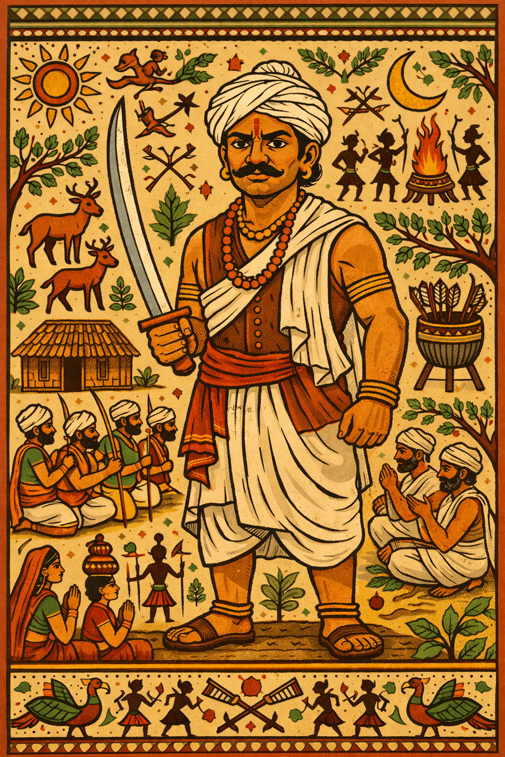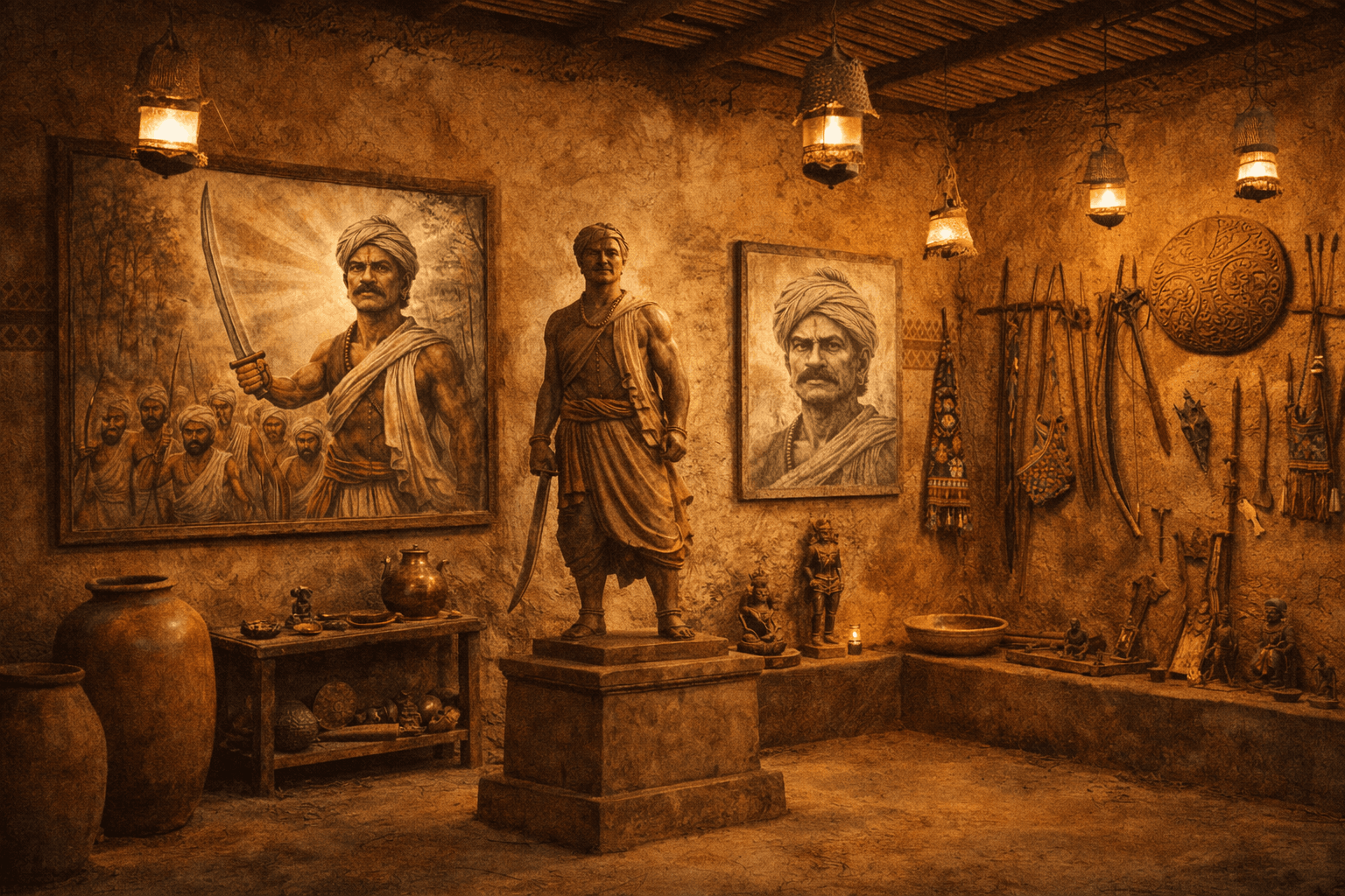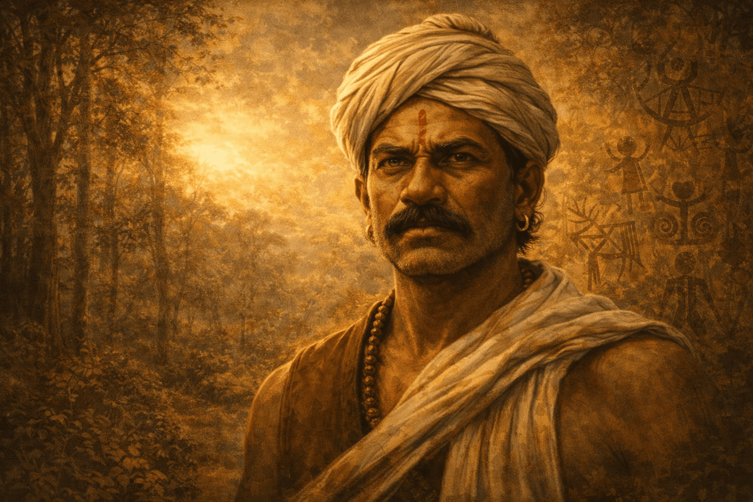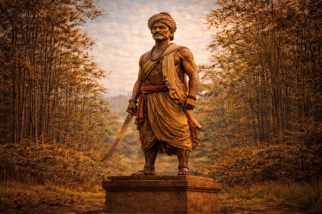 Gallery Visual tributes Artistic illustrations of Raghunath Singh Mandloi artwork Freedom movement and tribal resistance cultural remembrance Memorials & Heritage Representations
