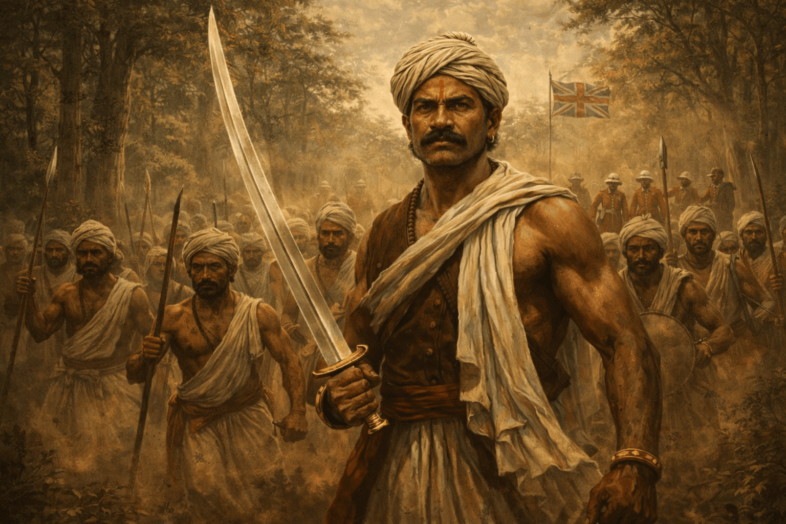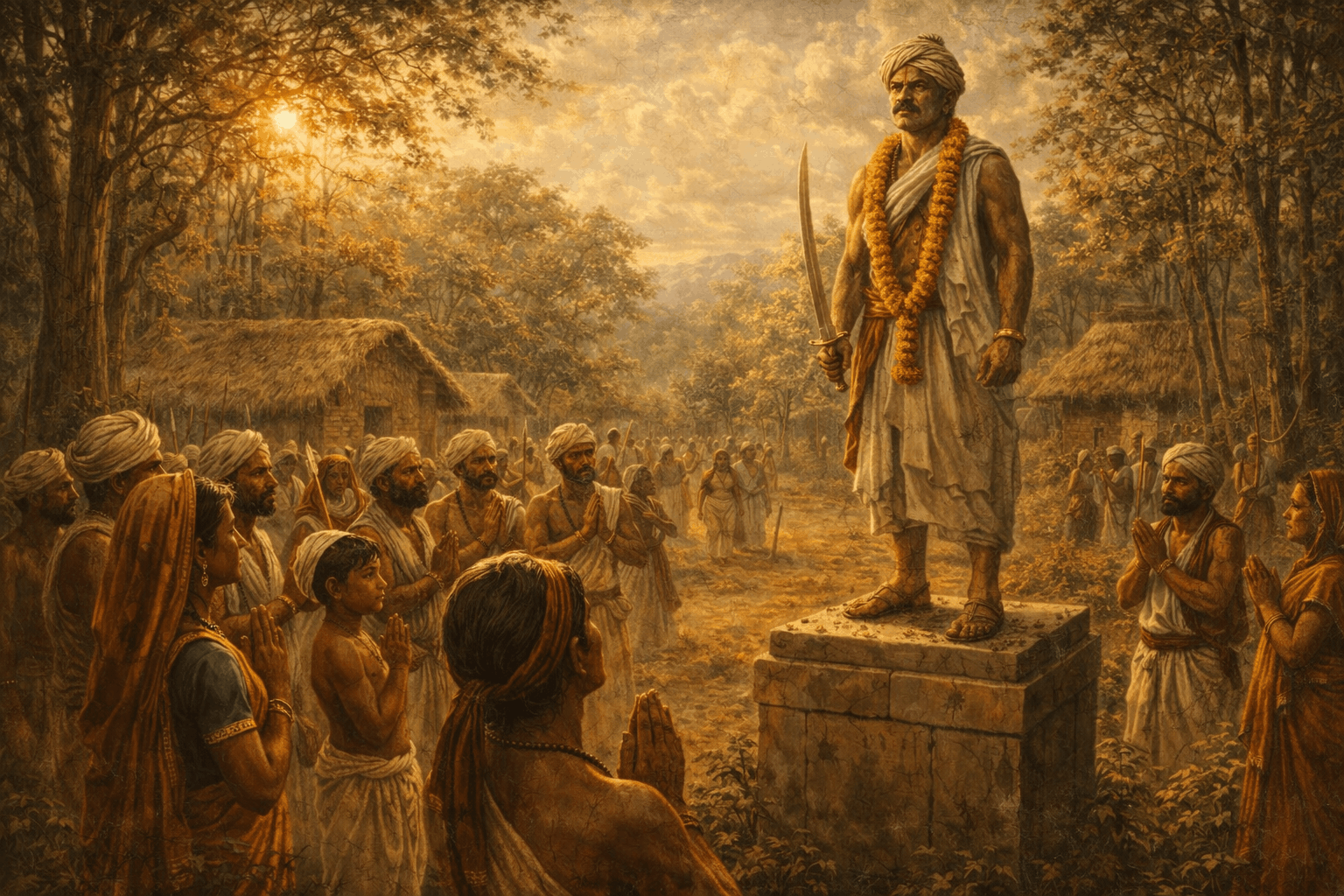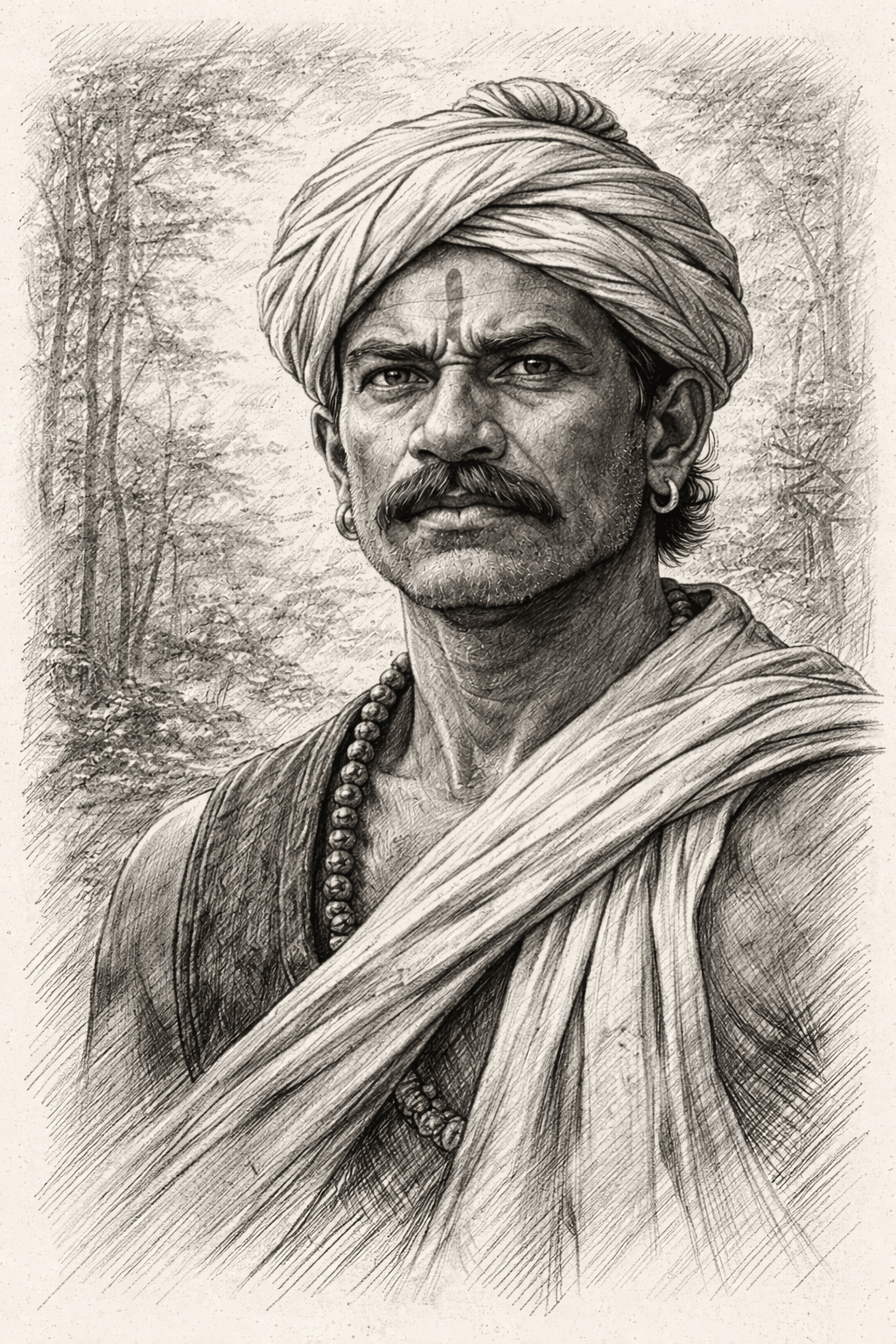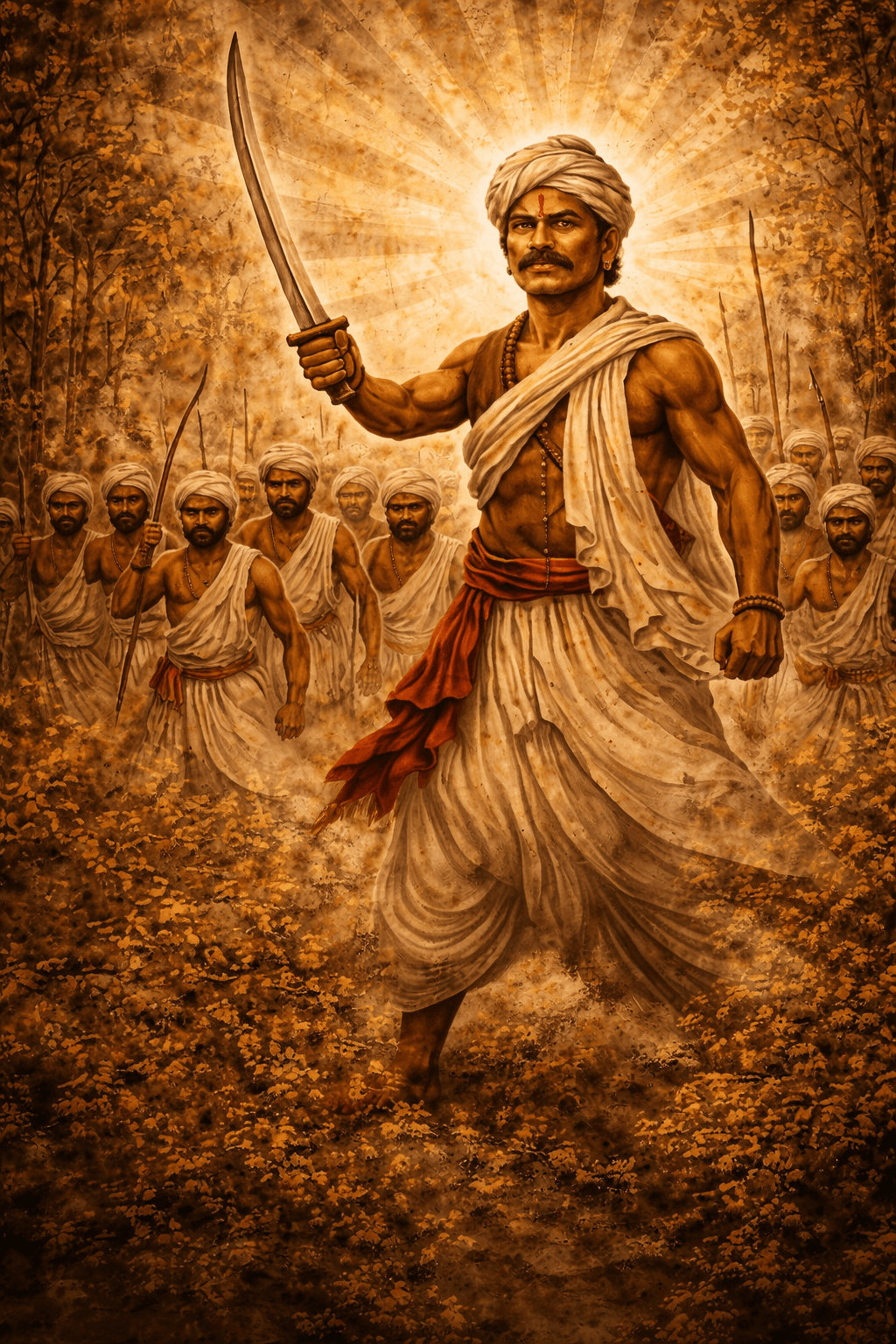 Gallery Visual tributes Artistic illustrations of Raghunath Singh Mandloi artwork Freedom movement and tribal resistance cultural remembrance Memorials & Heritage Representations